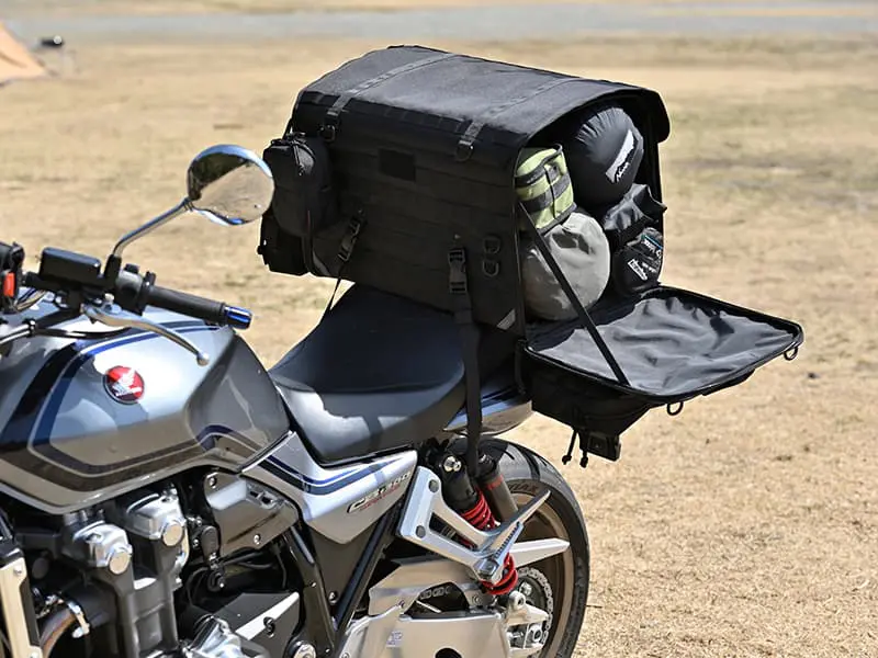 ツーリングバッグの中でもシートバッグは、柔軟性があり積み降ろしがしやすいため、使用頻度の高いアイテムを手軽に取り出すことができます。一方でハードケースは防水性や耐久性に優れており、雨天時でも貴重品や壊れやすいものをしっかりと守ることができます。ツーリングバッグは容量や形状も豊富にあるため、ツーリングのスタイルに合わせて最適なものを選ぶことをおすすめします。