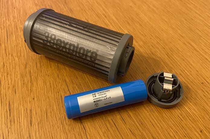 ここで、あらためて「38灯」はスゴいな〜と思うのが、充電池に市販の「18650リチウムイオン電池(フラットヘッド)」を採用しているところ。