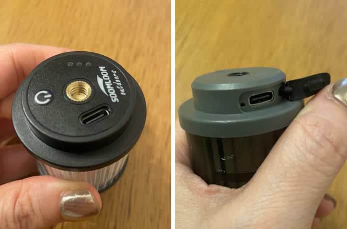 もう1点は、Type-Cケーブル挿入口の設計です。「38灯」は横向きでシリコン製の蓋付きのため、埃や水分の侵入を防ぐ作りなのですが、「ZOOZ」は真上を向いていて蓋もナシ。