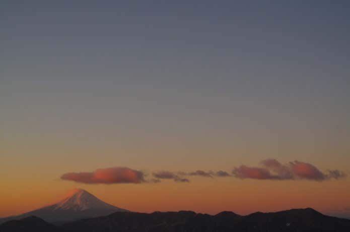 雲取山山頂から眺める富士山はまた格別!雲取山荘で宿泊した時は、ぜひ朝焼けの富士山も見ておきたい注目ポイントです。