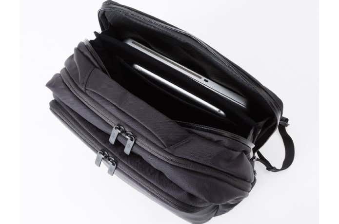 次は、PC収納を備え、スーツスタイルにも合うデザインのモデルです。