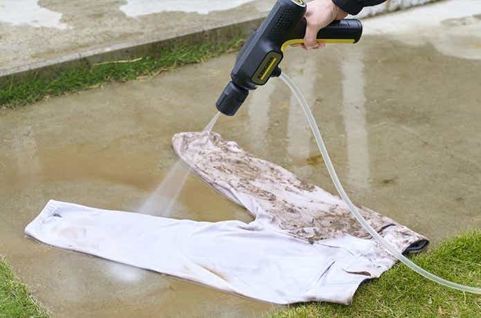 衣類の泥汚れを予洗い