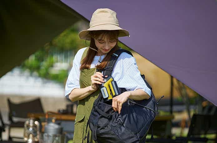 泥で汚れた靴やキャンプチェア、テーブルの脚をその場でサッと“シューッ”と洗い流せば、帰りの車内を汚さずに済む。そんな新しいキレイの持ち運び方を提案してくれるのがこの一台です。