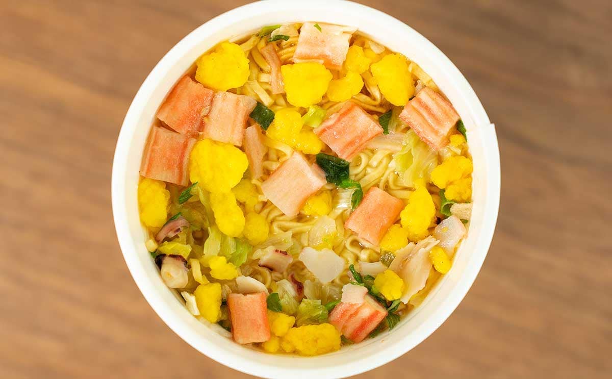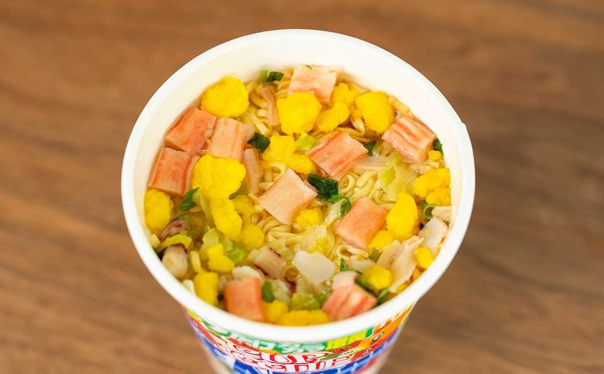 ポークをベースにあさりや野菜のうまみを濃縮したシーフードスープと、つるみのある麺、甘みを感じるキャベツ、たまごなどの組み合わせは、安定のおいしさです。そこに、カニカマがたくさん加わることでおいしさアップ! 食べ慣れたいつもの味なんですが、いつもとはちょっと違う楽しさと満足感を得ることができました。