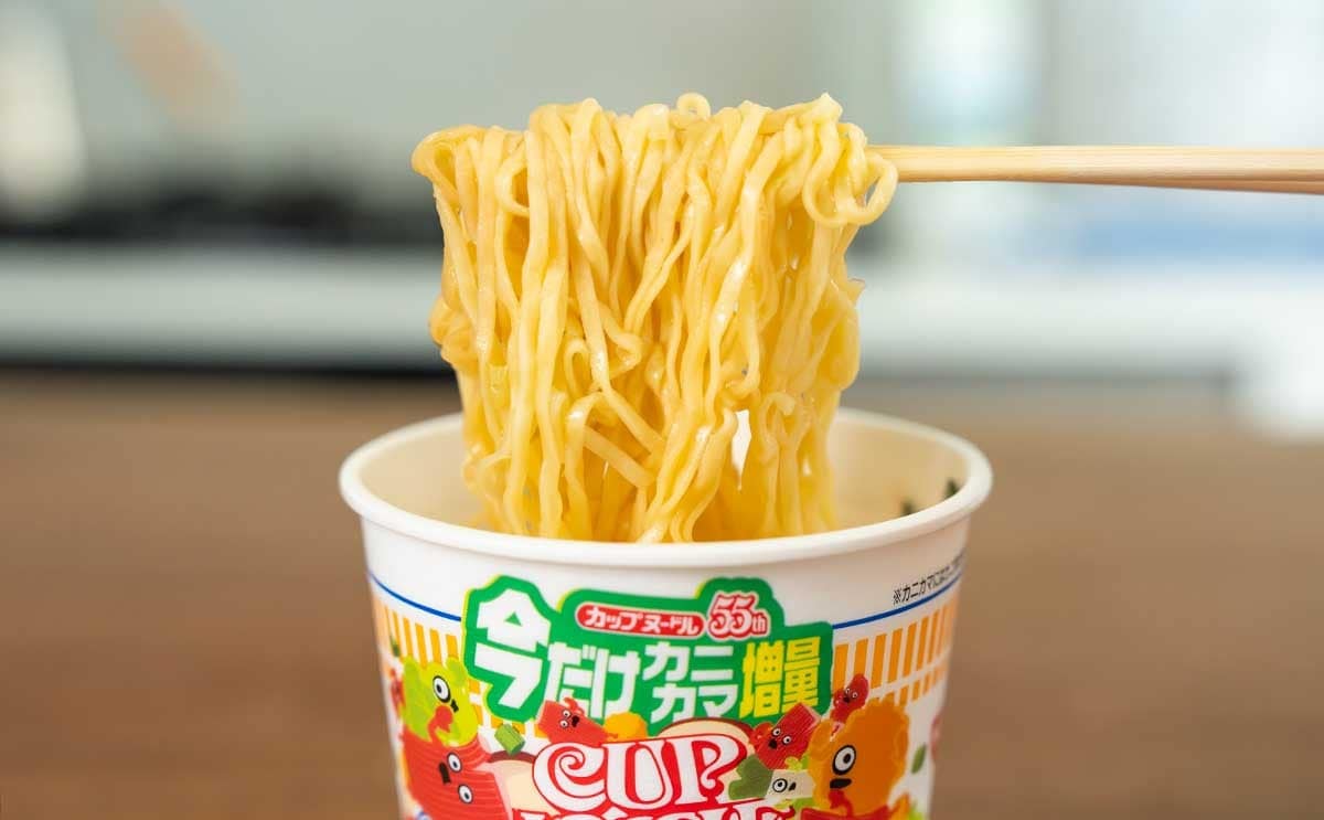 本商品は、「カップヌードル」が発売55周年を迎えるにあたり、人気具材の“謎肉”と“カニカマ”を、それぞれ約55%増量したものです。