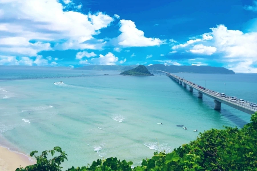 まるで沖縄のような美しい海の上を貫く、山口県が誇る全長1,780mの一本橋が「角島大橋」です。