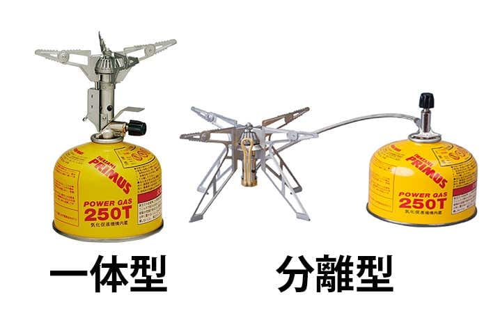 ガス缶に直接バーナーを取り付ける「一体型」と、ホースを経由して着火する「分離型」があります。