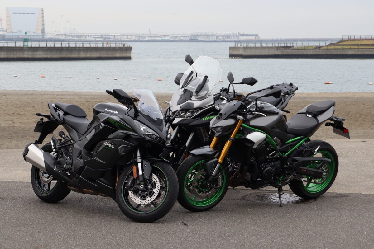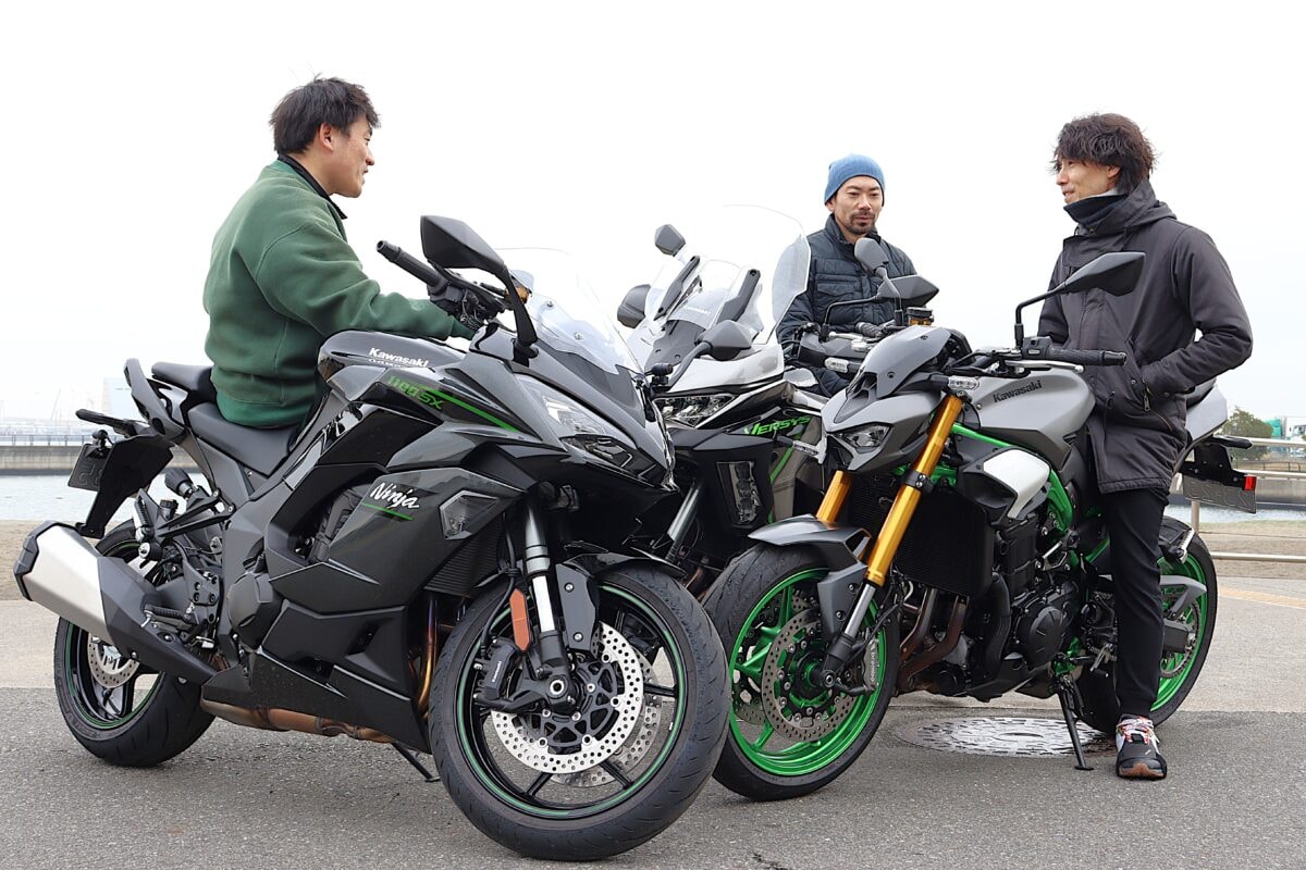 すでに公開中の前半パートでは、ヴェルシス1100SE、ニンジャ1100SX、Z900SEの3台の取りまわし、ポジション、足つき性、積載性といった「使い勝手」を中心にチェックした。