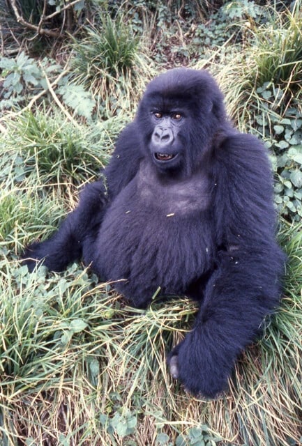 山極先生が研究対象とするゴリラ。写真はルワンダで山極先生が仲良くしていたゴリラ「タイタス」(オス)
