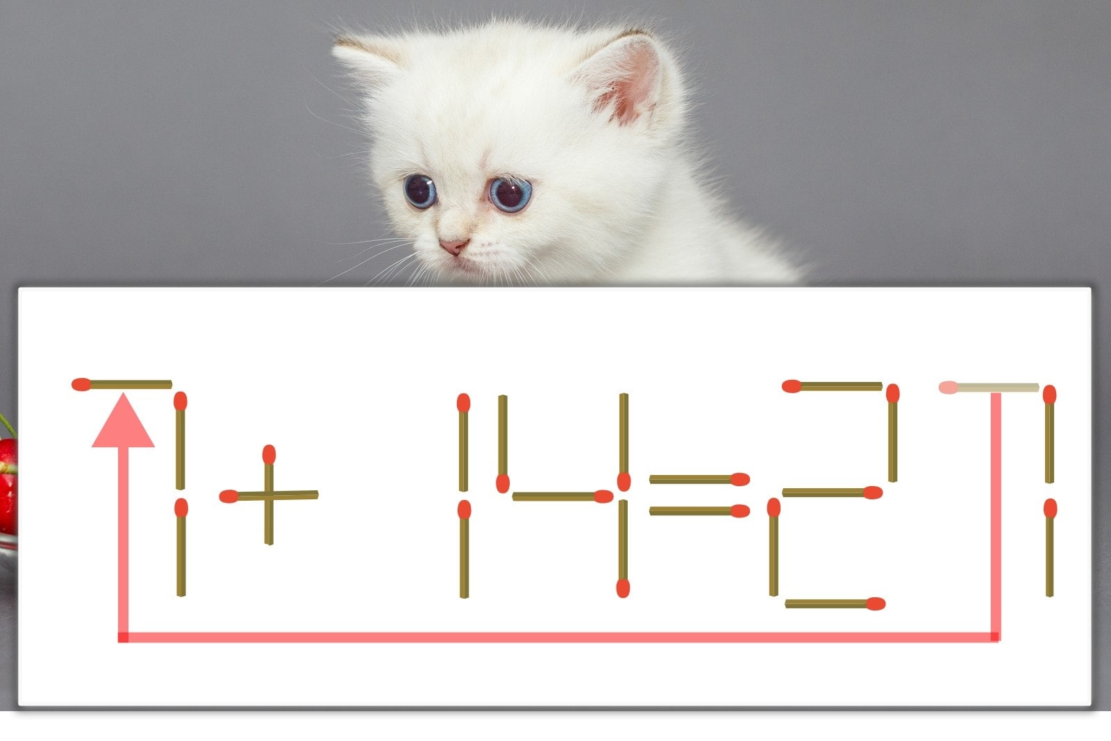 【問題】マッチ棒を1本動かして式を正しくしてください。