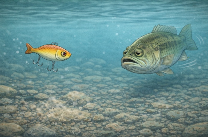 ルアーがどんどん移動するような動きは、とくにデカいバスほど嫌います。