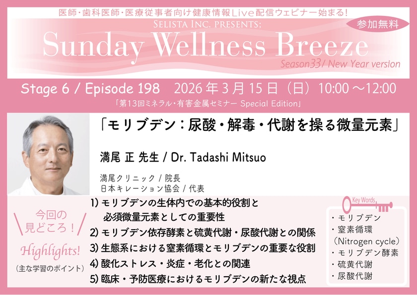 医療従事者向け無料セミナー「モリブデン:尿酸・解毒・代謝を操る微量元素」開催
