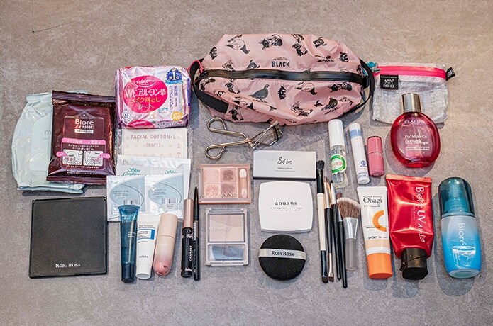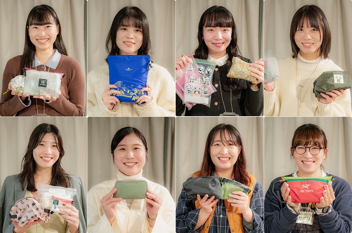 ここからは、参加者それぞれの山ポーチを大公開。ポーチひとつで完結派からスキンケアは別持ち派まで……中身もスタイルも実にいろいろ。今回はメイクまわりを中心にスタイル別でご紹介。