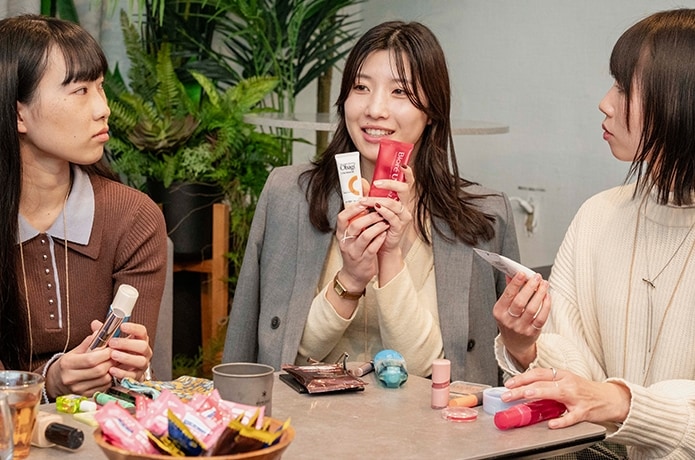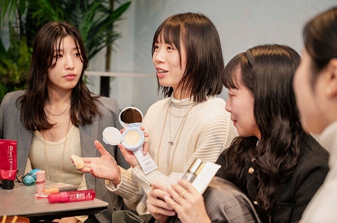 「小分けするのが手間だなって感じるから、1泊ならそのまま持って行きます。」と口々に答えるメイク女子たち。こだわるところと割り切るところ、そのメリハリが感じられました。