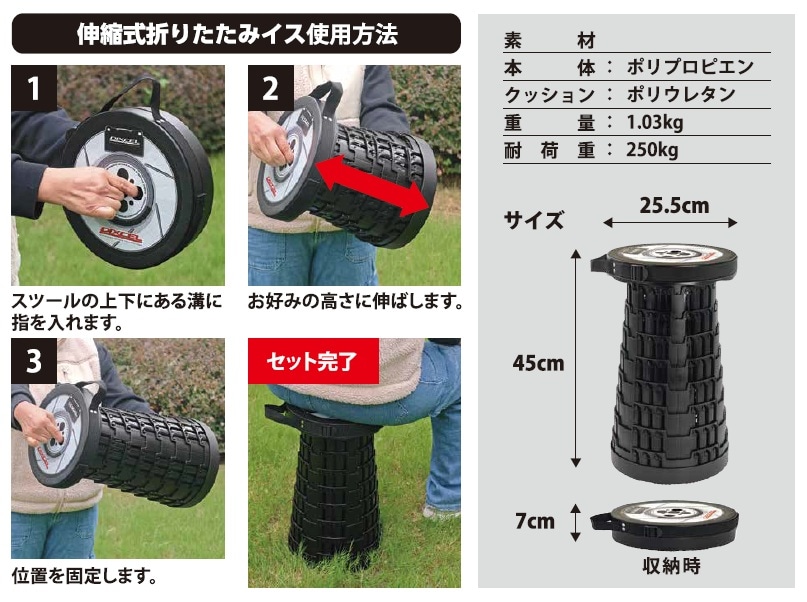 持ち運びにも便利! ディクセルから「コンパクトスツール」発売