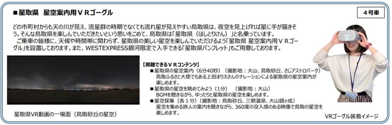 4号車のフリースペースなどでは、鉄の重厚感と和紙の温もりが融合した「行灯 銀河」が幻想的な光を放ち、夜の旅情を演出。さらに、天候に関わらず鳥取県の美しい星空を楽しめる「星取県 星空案内用VRゴーグル」も設置されます。ナレーション付きの星空案内は、まるで宇宙を旅しているかのような没入感を味わえる、銀河ならではのおもてなしです。