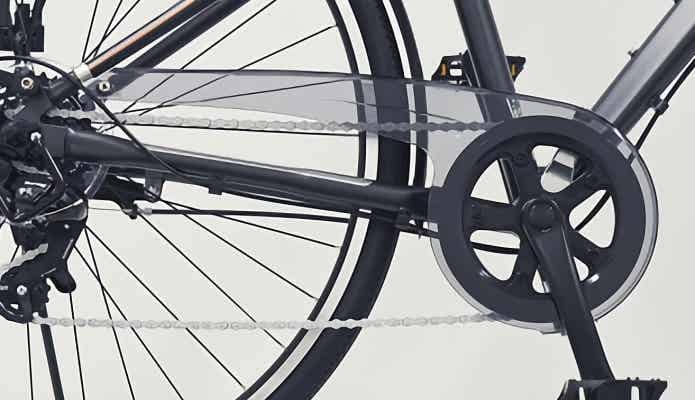 爽快に走りを楽しむことができるクロスバイクですが、チェーンなどで服が汚れやすいのも事実。チェーンカバーでそんな心配を解消。お気に入りのパンツで、オシャレもライドもマックスで楽しみましょう!