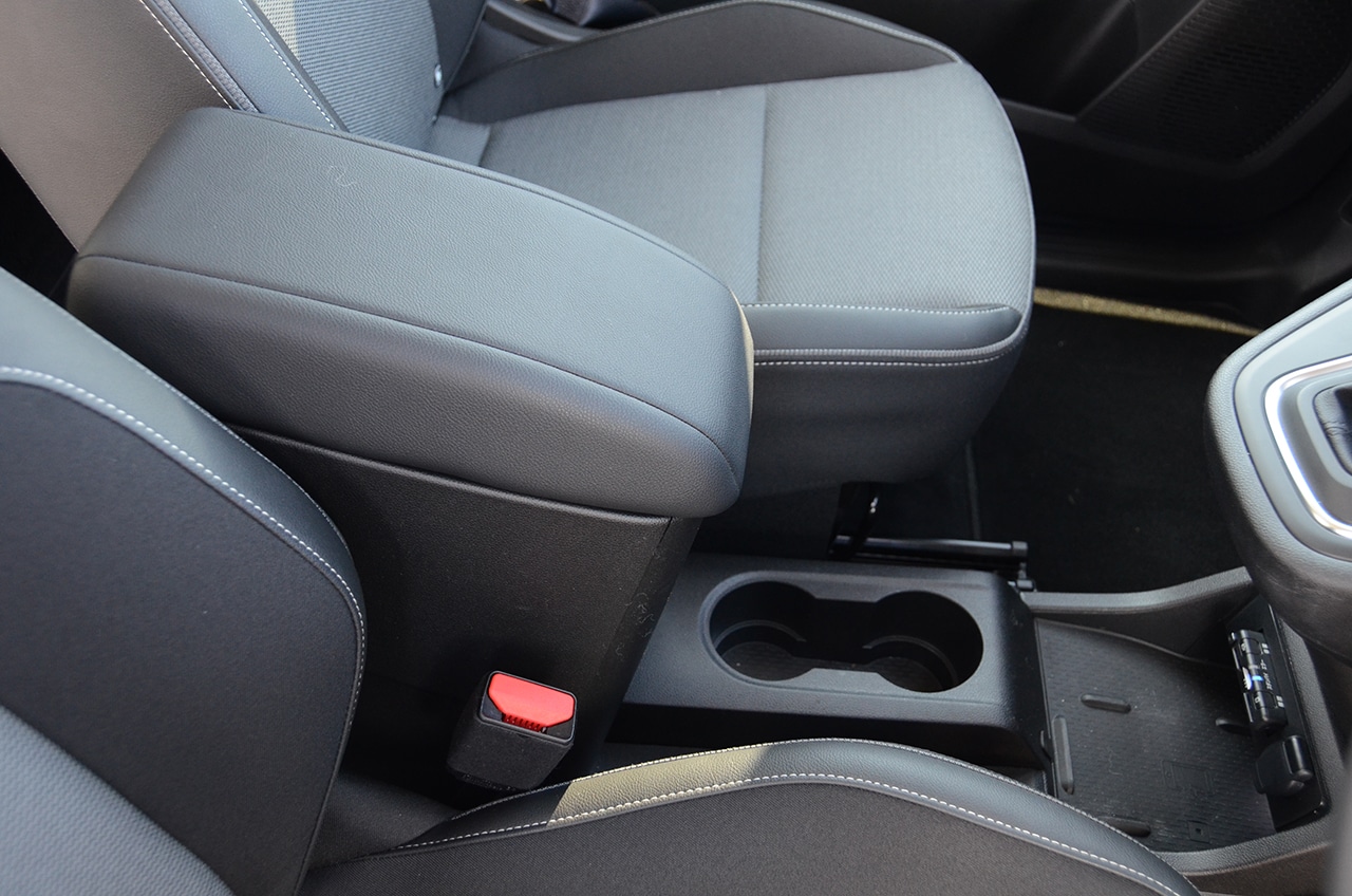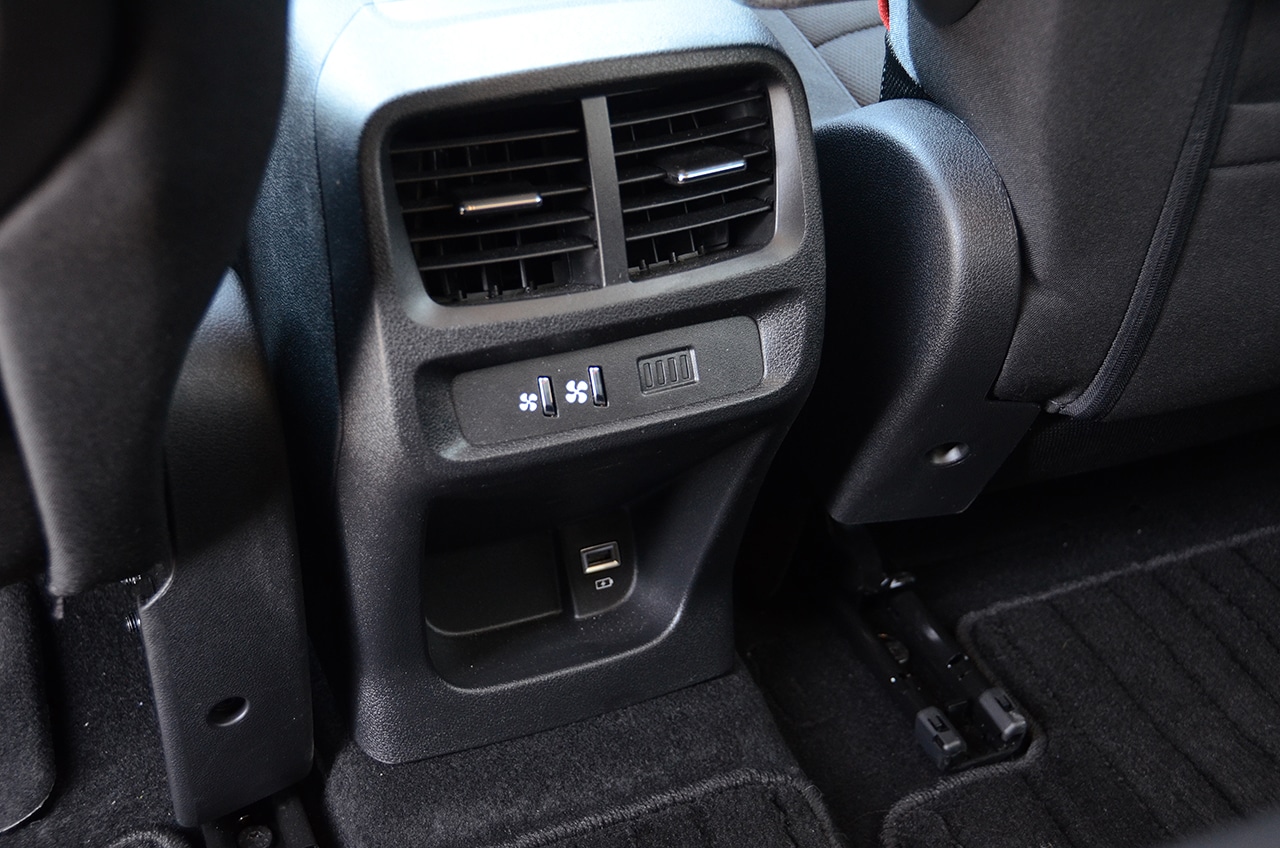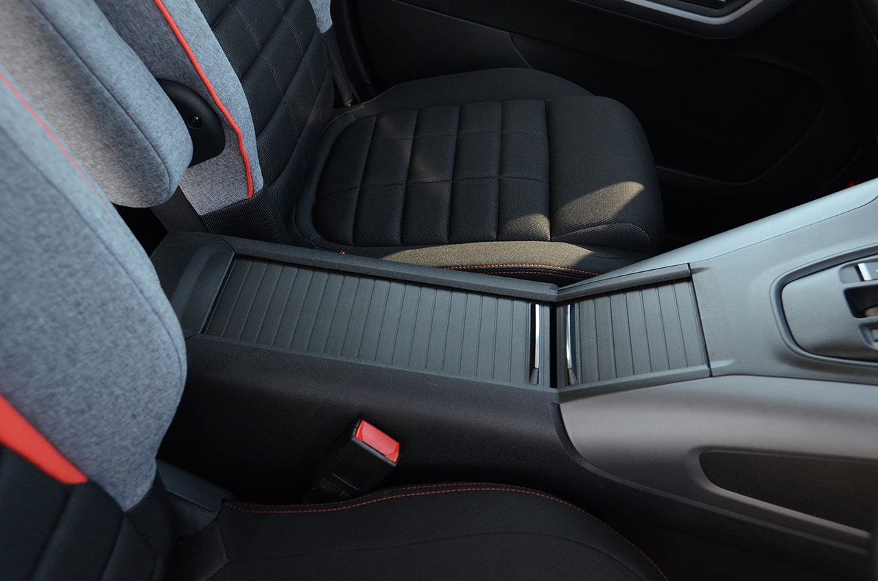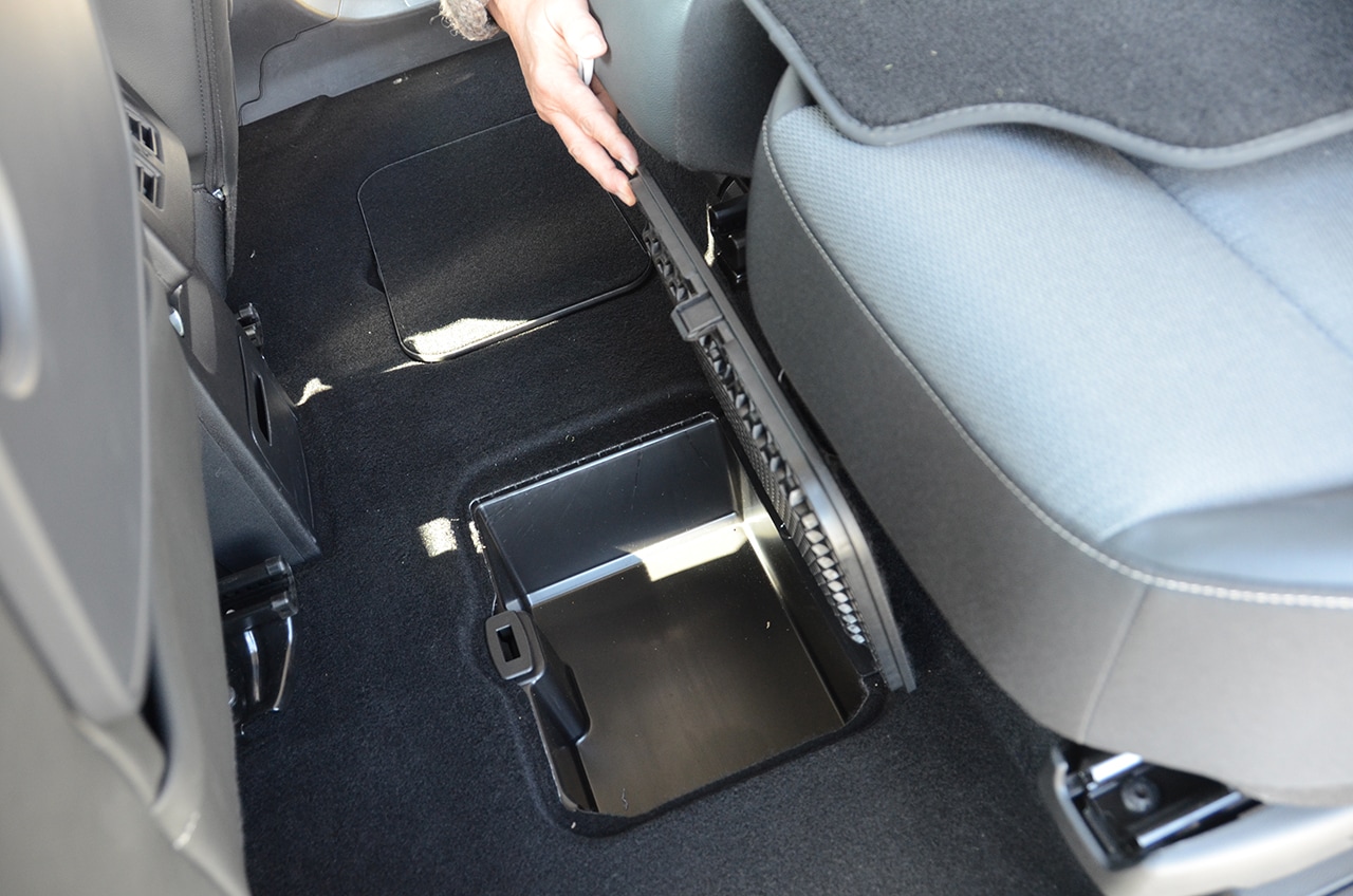 2列目センターシートはダイブダウン式とシートバックだけ倒れるタイプの違い。また2列目にはトレイも装備されるがどちらも華奢なつくりで軽い物しか置けない。