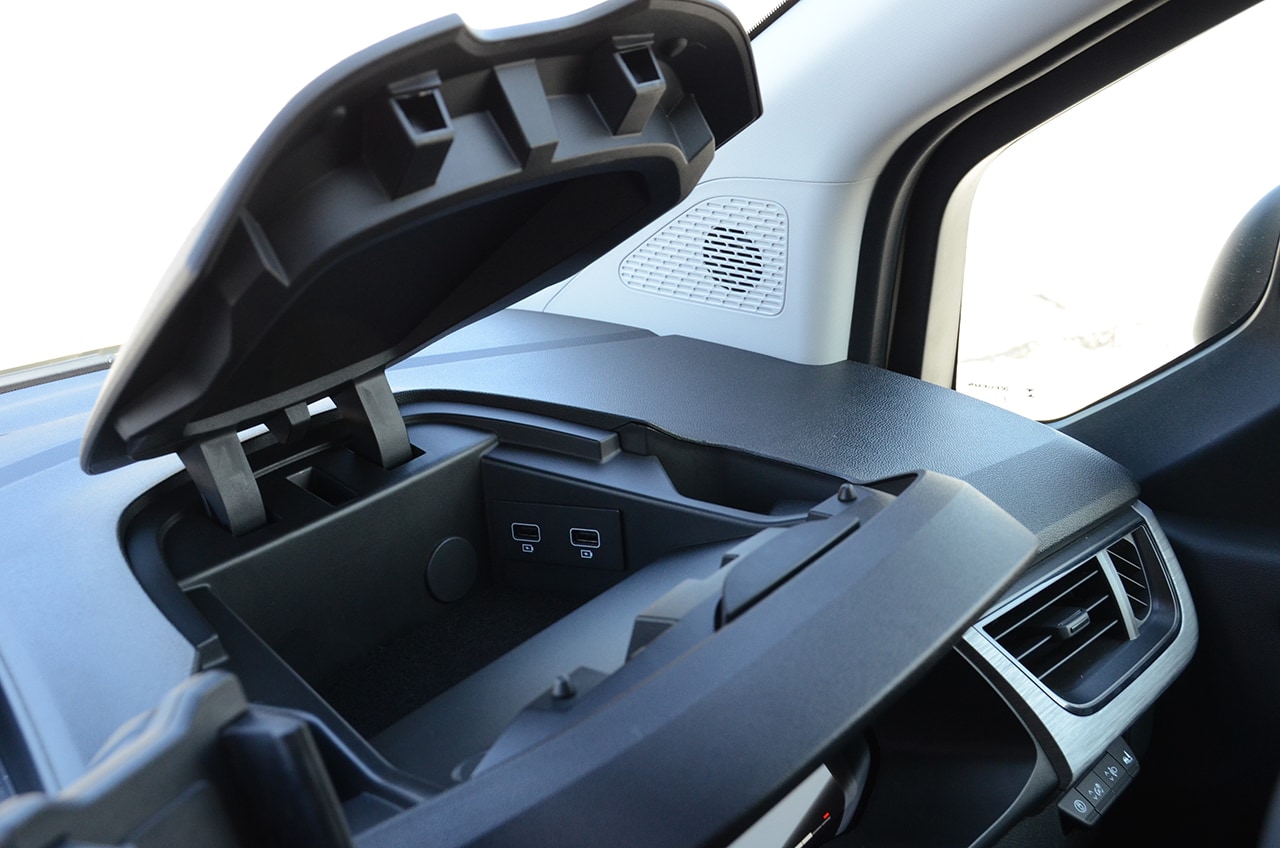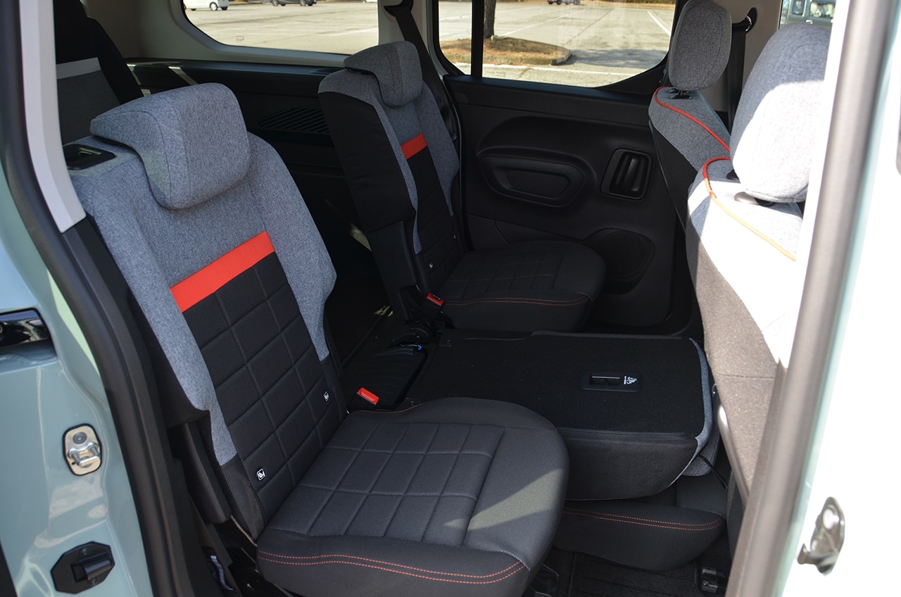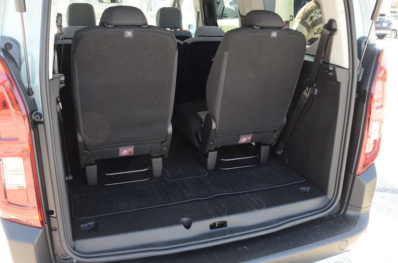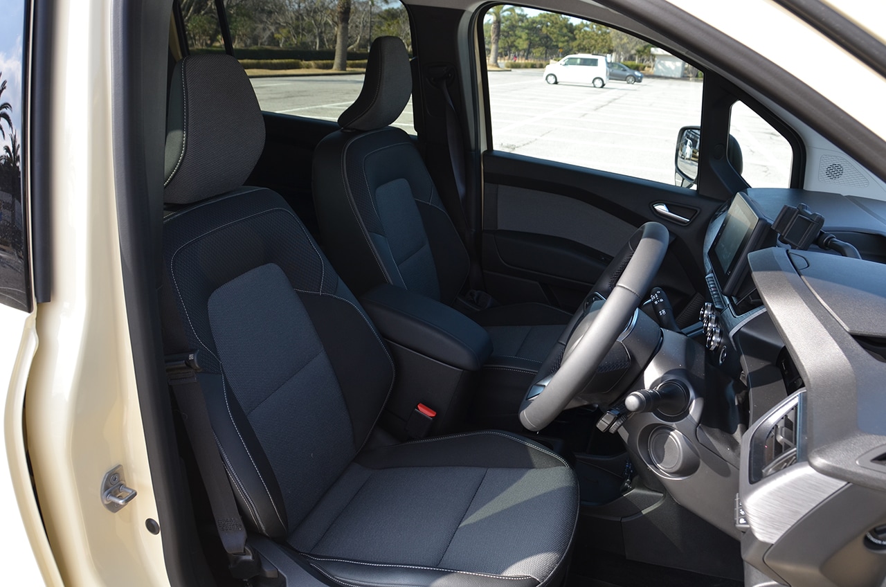 グランカングーは商用車を意識した外観だが、インテリアは快適な仕様で乗用ライク。またシトロエンはデザインへのこだわりがシートデザインにも出ている