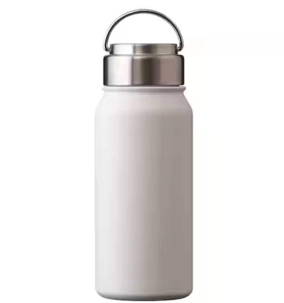ニトリ「ステンレスハンドル付きスクリューボトル 530ml」は、保冷・保温対応の真空断熱ボトル。広口設計で氷が入れやすく、短時間の氷の持ち運びにも使える1本です。本来は飲み物用の水筒ですが、密閉性と冷却力の高さからミニアイスコンテナ的な使い方も可能。