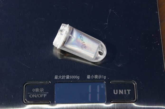そして本体ミニライトの重さは11g。100円玉2枚ほどの軽さです。