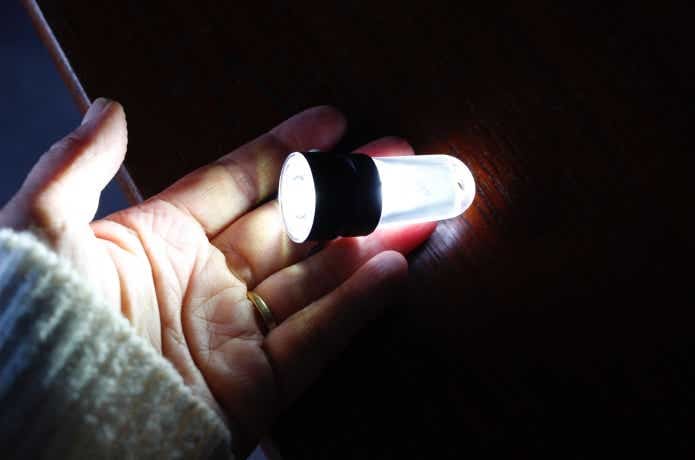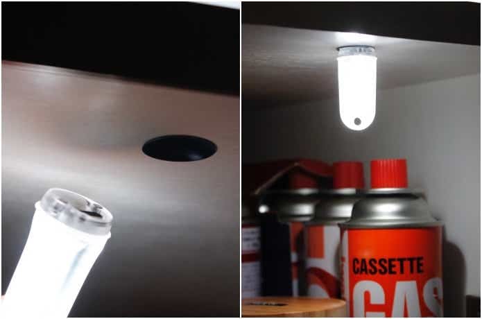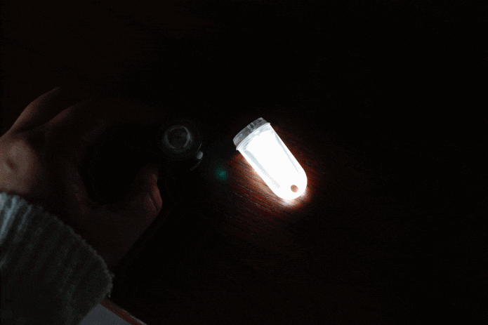 試しにシェルターの中で上から照らしてみると、これひとつで十分、作業できる視認性のよさでした!