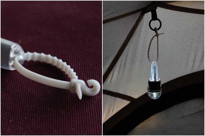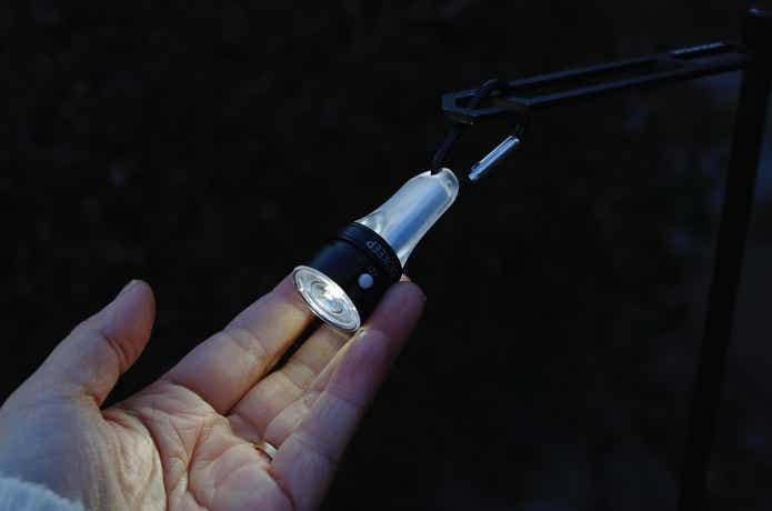 付属のカラビナを使えば、ランタンハンガーなどにサッと吊るせて便利。