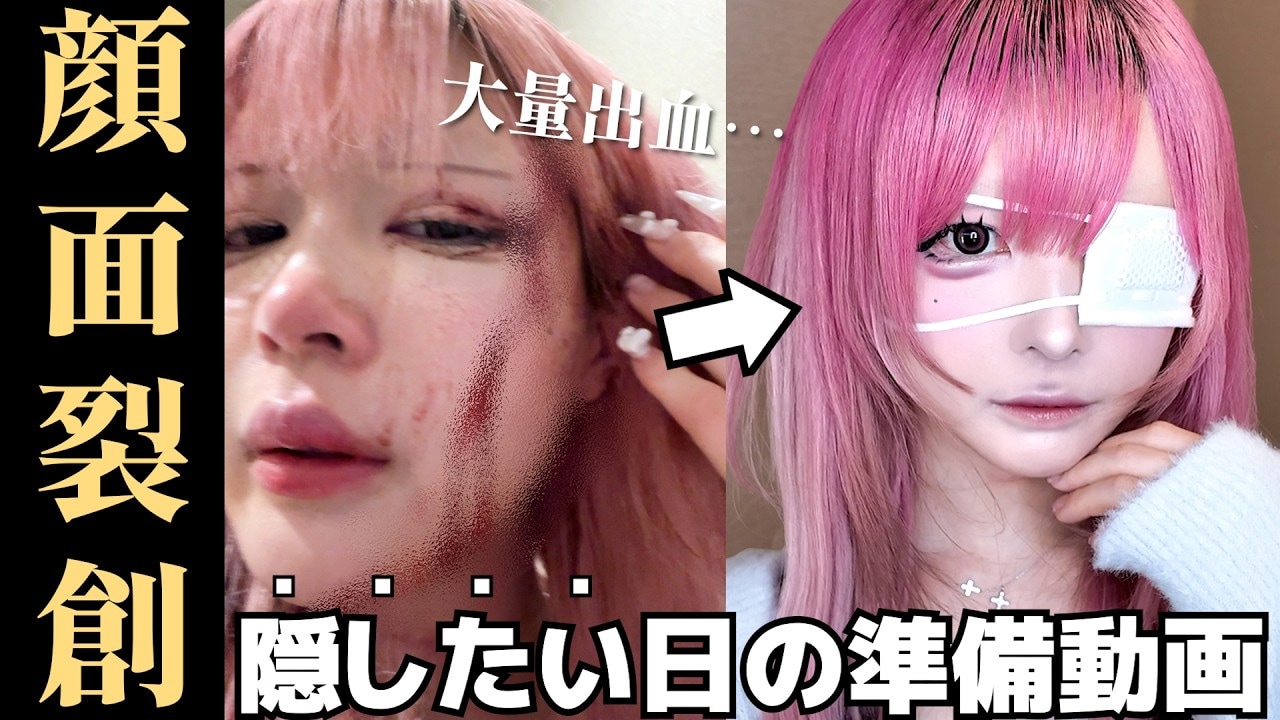 美容系YouTuberハウスダスト、顔面を負傷 棚から落下したパソコン機材が直撃