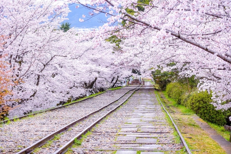 一押しは、京都駅から琵琶湖線か湖西線で約5分の山科駅で下車して乗り換え、京都市営地下鉄で2駅約5分の「蹴上インクライン」。少しだけJRから外れてしまいますが、インクライン(舟運ルートで使用された線路跡地)沿いを埋め尽くすように咲く桜の木々が美しく、一見の価値あり。線路跡を辿りながら桜を観賞できます。