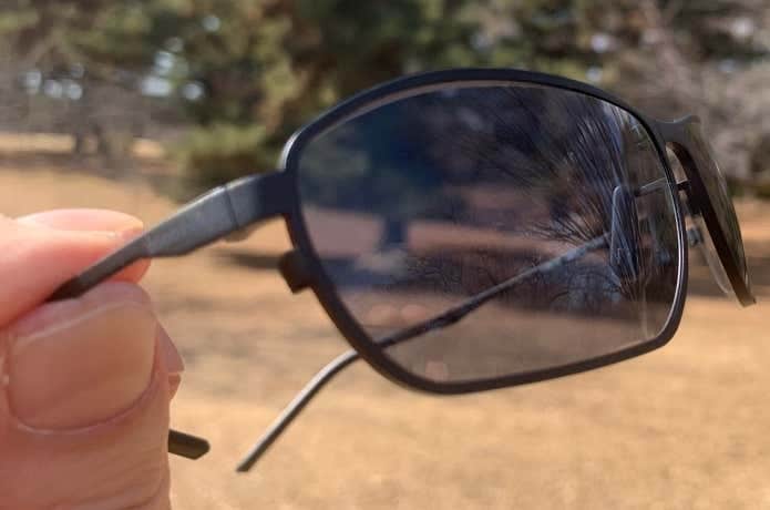 UVカット率は99%以上で、紫外線が強い登山でも安心のスペック。可視光線透過率(レンズ色の濃さ)は25%と濃すぎない数値で、外見からも目線がわかり威圧的な印象を抱かれにくいのもポイントです。