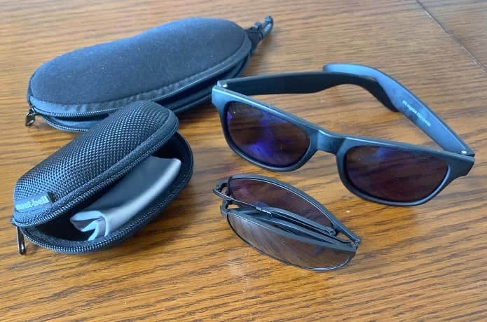 日差しがまぶしい場合は「着用」して、暗い樹林帯や山小屋・茶屋などの室内では「外す」というように、シーンによって着脱の頻度が多いのがサングラス。このため特に着用しないタイミングで、どこに・どのように収納するかが使い勝手に大きく影響します。