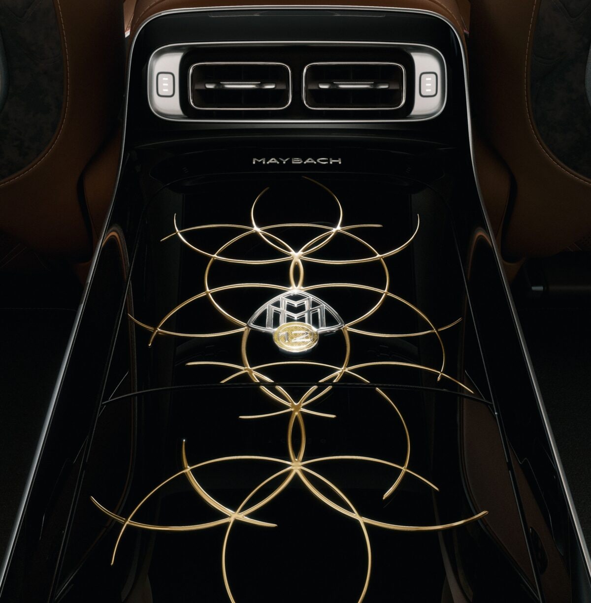 さらに、後席リアコンソールにもマイバッハ・エンブレムの下にゴールドのインレイをあしらい、「12」を組み合わせたマイバッハ・エンブレムが12個のゴールドサークルに囲まれるように配されるなど、細部に至るまで比類なきクラフトマンシップを体現します。