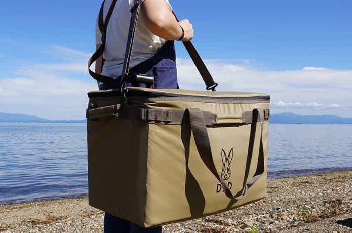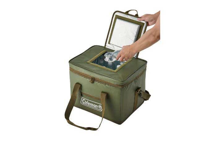 天面はハード仕様になっていて、簡易的なテーブルとしても使用可能。ドリンクを置きやすい凹みが設けられているので、ぐらついて倒れる心配もありません。ショルダーベルトが付属しているので、持ち運びもスムーズ。43Lと大容量ながらECサイト経由なら1万円以下で購入できますよ。