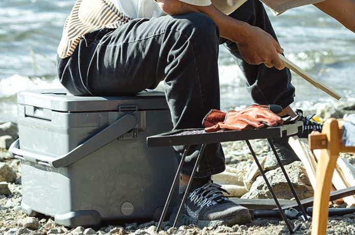 クーラーボックス自体が丈夫な構造だと、イスとして使用できます。また蓋の天板にドリンクが置ける仕様だと簡易的なテーブルとしても使用でき、使い勝手が広がります。