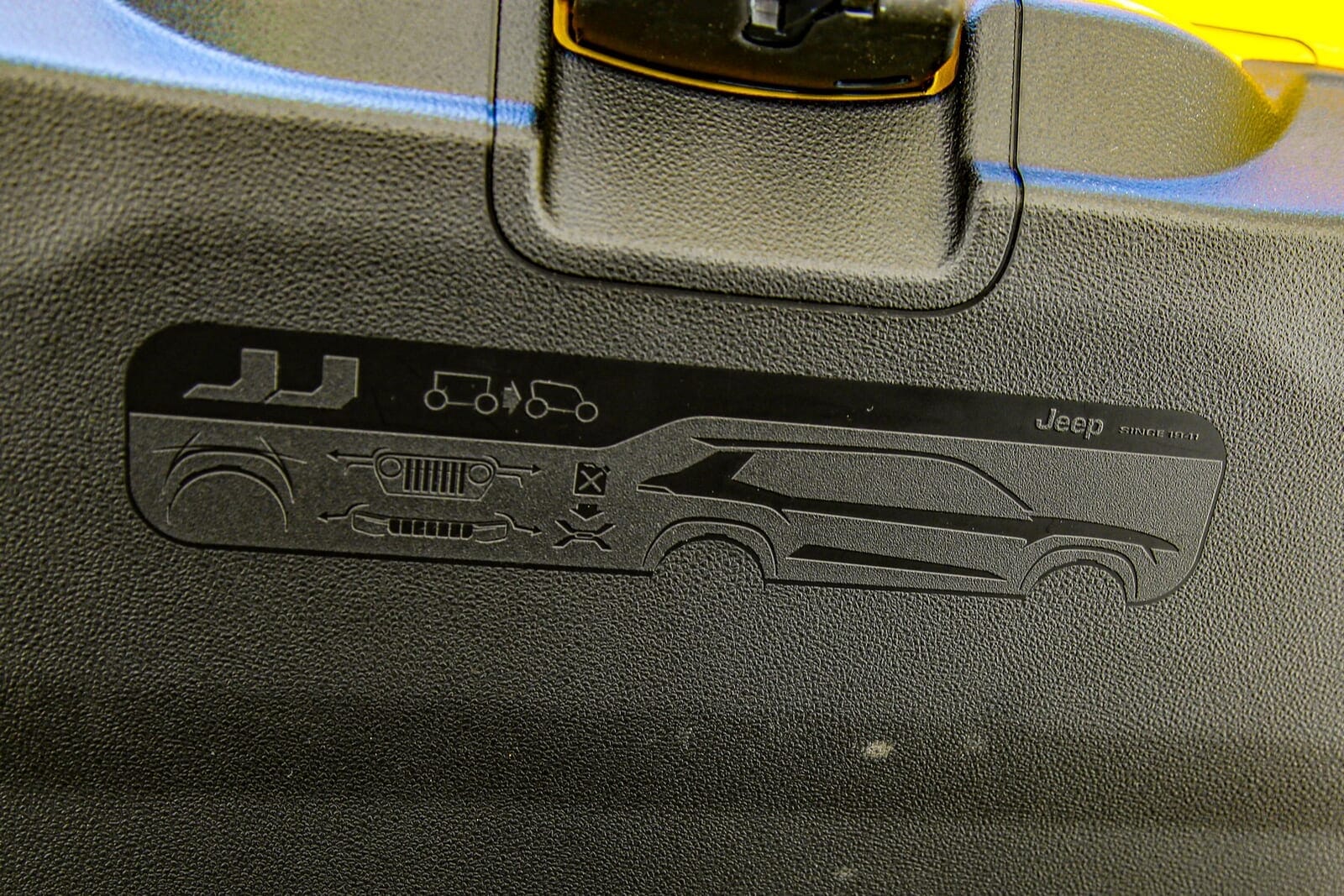 エクステリアに目を向けると、ヘッドライトや美しい塗装面は、分厚い無塗装の樹脂クラッディングよりもわずかに内側に引っ込んでいる。これは、木々の枝や岩(あるいはショッピングモールの乱暴なカート)から高価な部品を守るための「犠牲的バンパー」なのだ。ジープの伝統であるスクエアなボディと7スロットグリルを現代的に解釈しつつ、道具としての機能美を一切妥協していない。