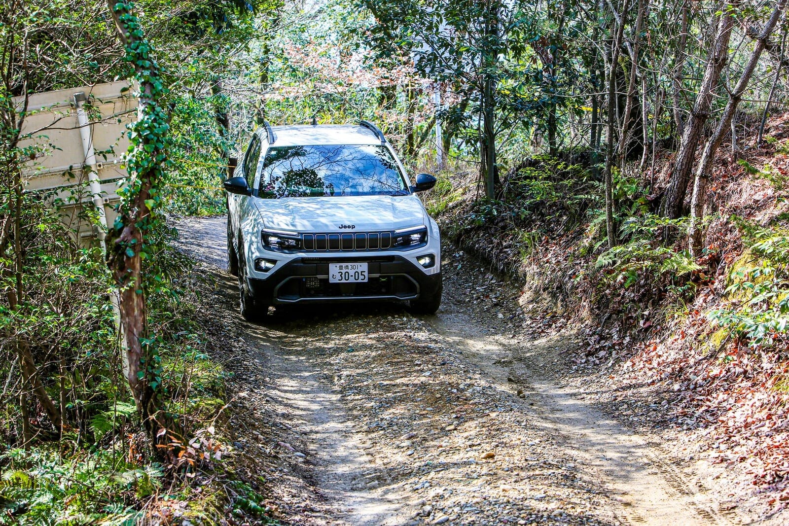 そんな折、愛知県にある「さなげアドベンチャーフィールド」に呼び出された。木々が生い茂り、泥と轍が支配する本格オフロードの聖地である。そこに待ち受けていたのは、アベンジャーの新しいバリエーション、「4xe Hybrid(フォー・バイ・イー ハイブリッド)」だった。四輪駆動であり、エンジンを積み、そして何より、泥まみれになる準備が完全に整っていた。
