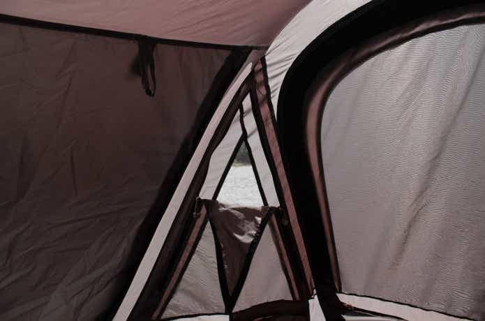 肝心な内部はというと幅145×奥行き240×高さ108cmで、大人1~2名+子ども1名が入れるサイズ感。四隅にある三角窓もメッシュにできるので、フルクローズでも換気できるという細部までのこだわりを感じます。
