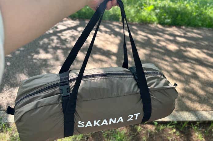 誰でも超簡単に設営・撤収でき、収納サイズはご覧の通りコンパクト。手に持っても肩にかけてもひきずることはなく、斜め掛けにも対応しています。