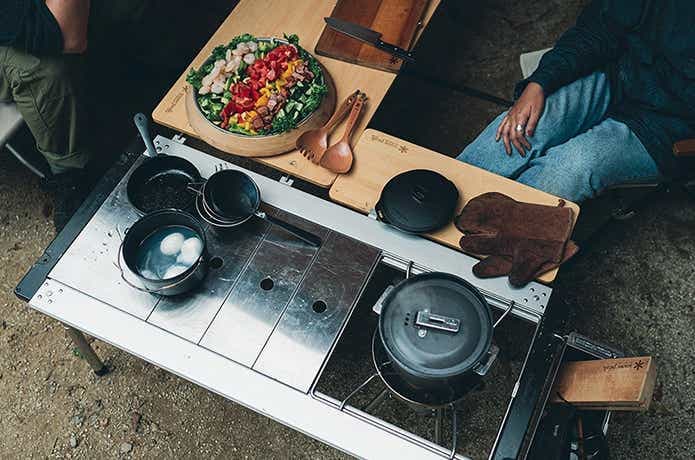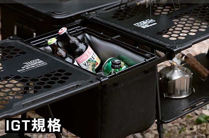 「フラットバーナー」に代表される、スノーピークのIGTシリーズ。「アイアングリルテーブル=IGT」をベースに、さまざまな共通規格オプションを追加できるユニットシステムです。
