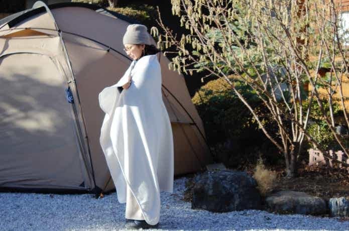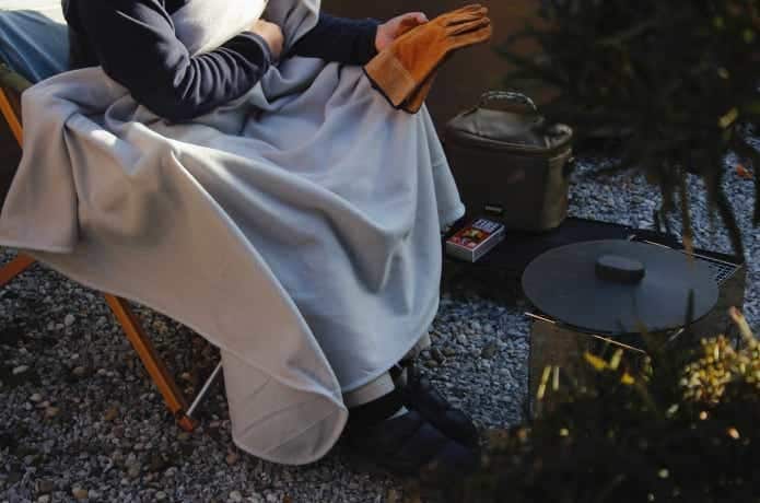 その点、この毛布は難燃なので、肩から羽織っておくと安心感が段違い。火の粉が飛んできてもすぐに穴……というリスクがぐっと下がるので、お気に入りのウェアを守れると思うと、心強いものです。