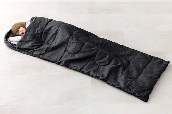 ちなみに、このSOBANIシリーズには、寝袋やエアマットもありました。寝袋は2,200円、エアマットは880円。つまり、この難燃毛布・寝袋・エアマットの寝具3点が5,000円以下で揃えられるという衝撃……。