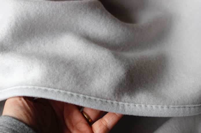 難燃繊維を使っているとだけあって、さわり心地が気になっていたのですが、やわらかいタッチで肌あたりはかなり良好でした。むしろ「これが難燃素材?」と思うほど、質感はごく普通のソフトなフリースのよう。