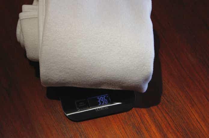 大判サイズながら、重さは約400g。薄手フリースジャケットのようにふわっと軽いです。