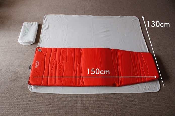 愛用のソロマットが長さ150cmなので、重ねてみるとちょうどぴったり。筆者にはちょうどいい長さでしたが、身長の高い人が寝具として使うには、足元が少し出てしまうかも。毛布というより、ブランケットと考えるとしっくりくる大きさですね。