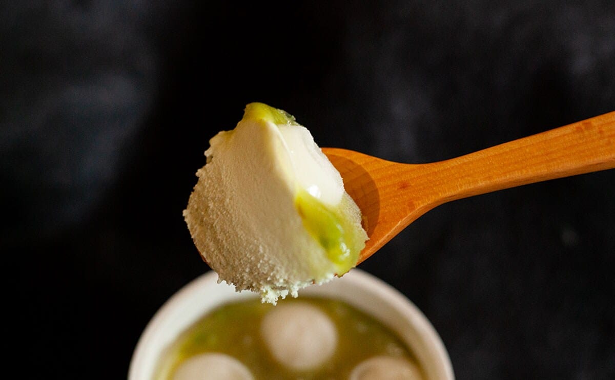 ずんだアイスはミルクの味わいもしっかり楽しめて、枝豆の風味もふわっと香る程度なのですが、ずんだあんと混ざり合うことでより濃厚な味わいに。粒感がちゃんと残っているのもうれしいですね。ずんだアイスだけだと風味が弱く、ずんだあんだけだと甘すぎる。一緒に食べることで完成するアイス、といったところでしょうか。