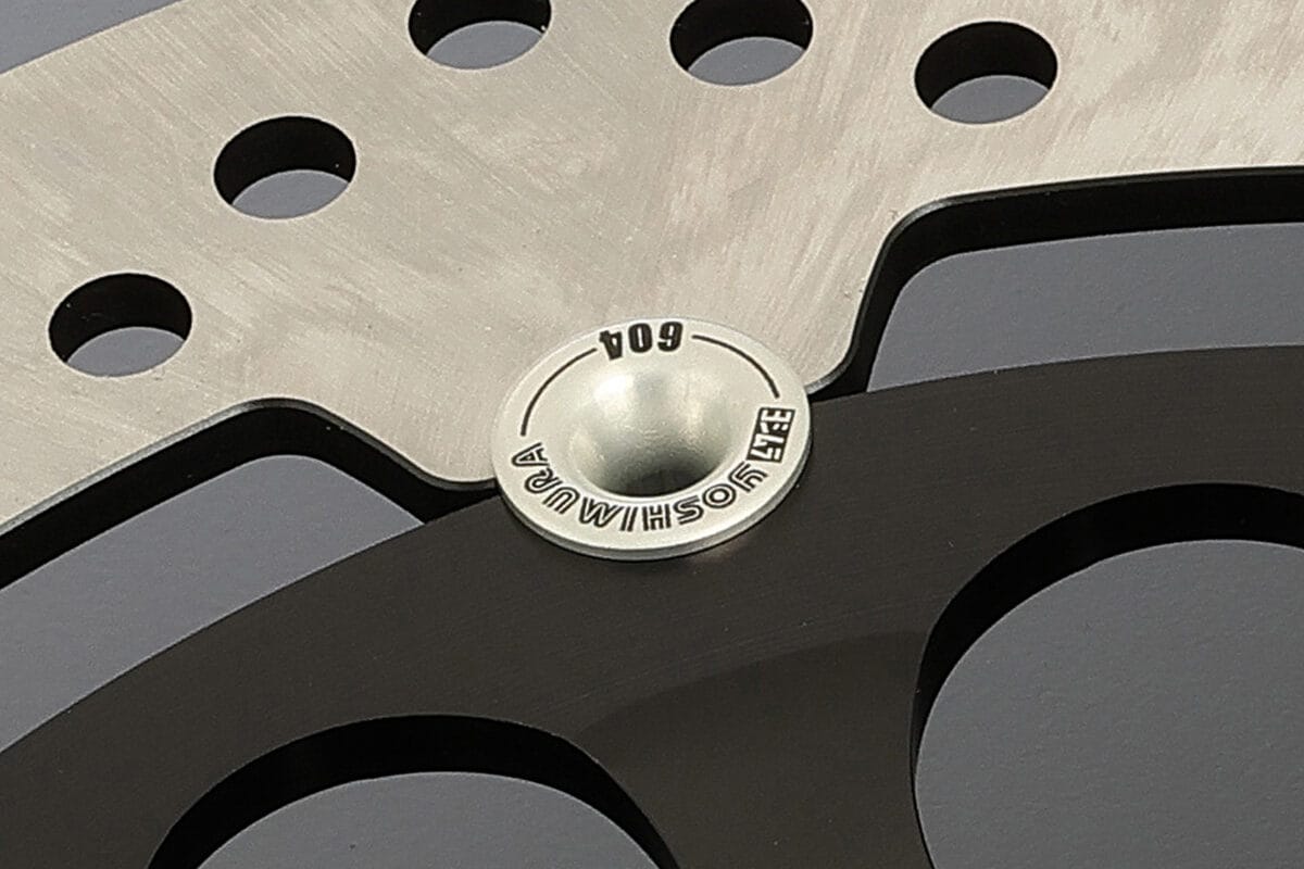 1986年AMAスーパーバイク参戦車両「ヨシムラ GSX-R750 #604」に採用されていたブレーキディスクのデザインや雰囲気を忠実にオマージュ。当時のスタイルを再現しました。