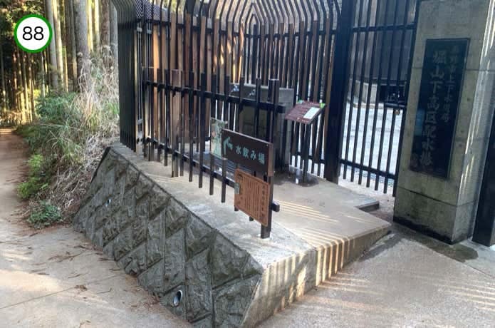 足元がコンクリート舗装に変わると、右手に秦野市上下水道局・堀山下高区配水場に併設された水場があります。蛇口をひねると水が出てくるシンプルな水場ですが、秦野市の水道水は丹沢の豊富な地下水や伏流水を利用した全国で3番目に古いもの。