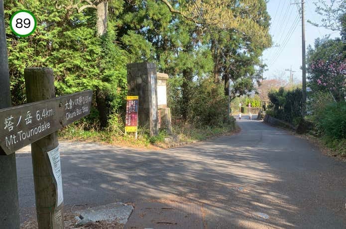 丹沢大山国定公園の大きな看板がある場所で、車道と合流します。あとは県道706号線に沿って大倉へと下っていくだけです。