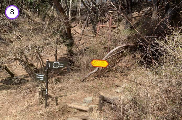 戸川林道からの烏尾山尾根と合流すると、烏尾山荘跡に出ます。三角屋根が表尾根のシンボルのひとつであった山小屋でしたが、残念ながら2024年末で営業終了となりました。