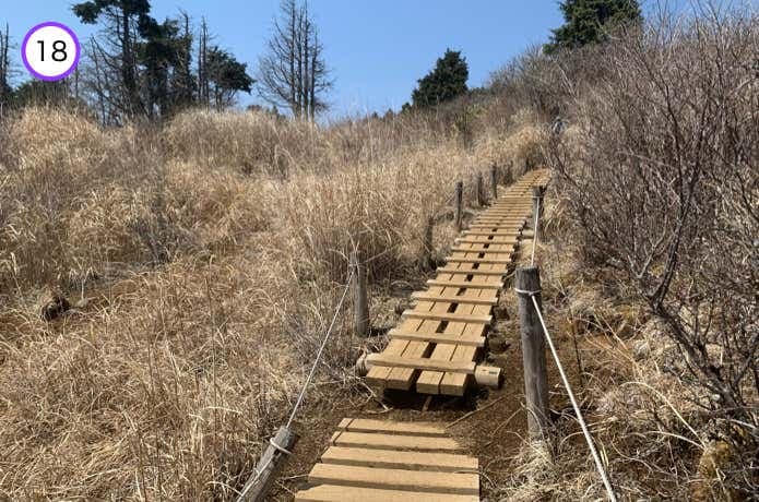平坦な木道を進んでいくと、いったんわずかに登り返すポイントです。